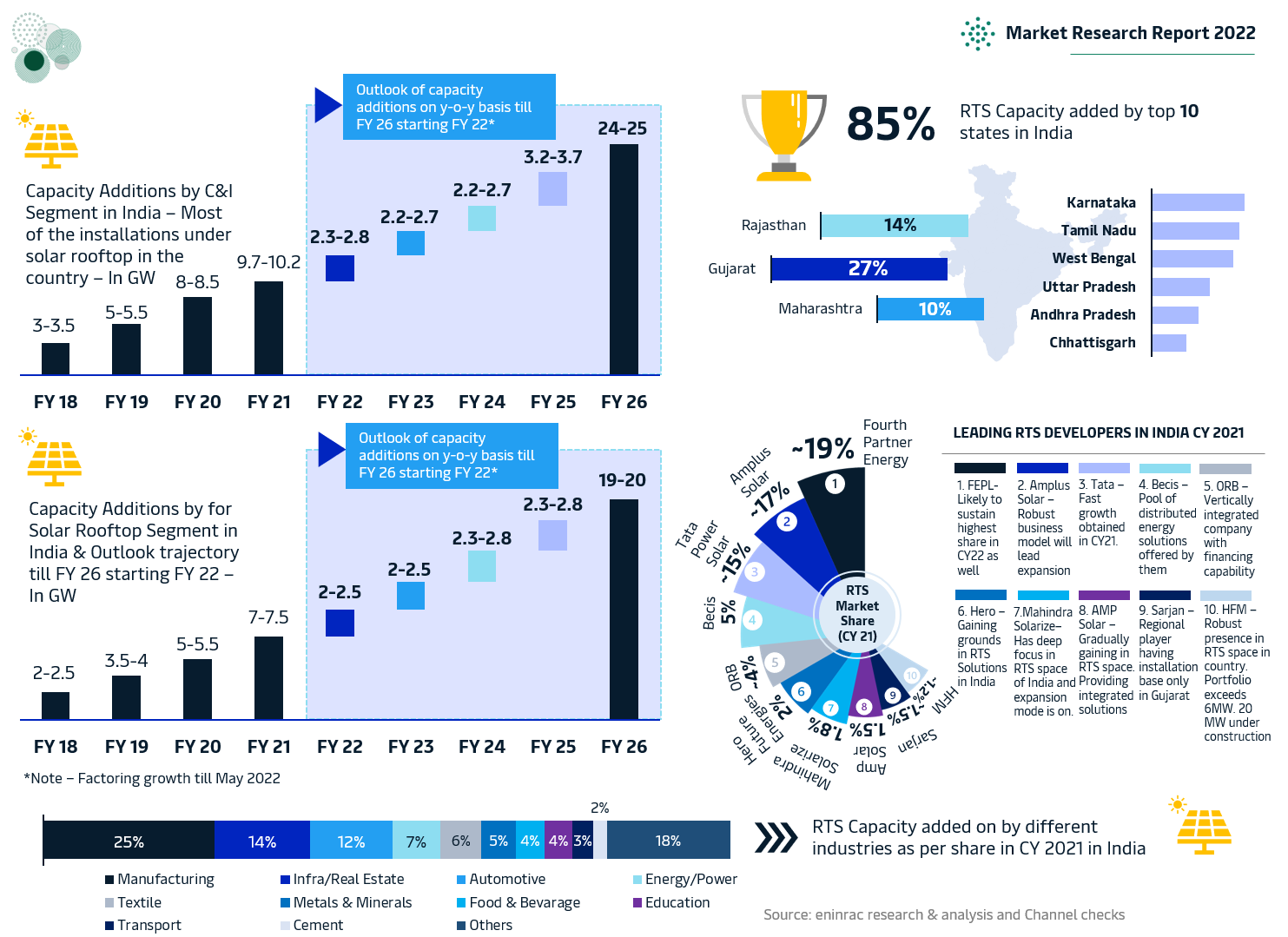 Solar rooftop market hold immense potential in securing last mile green connectivity in India with possibly least impact upon grid stability. Most of the RTS developers and value chain providers are building fast paced solutions to tip the key bottlenecks of awareness among consumers and purchasing power parity in the event of lack of apt finances. In this milieu with correct measures by Government has enabled a right atmosphere for increased pace of RTS capacity additions in the country