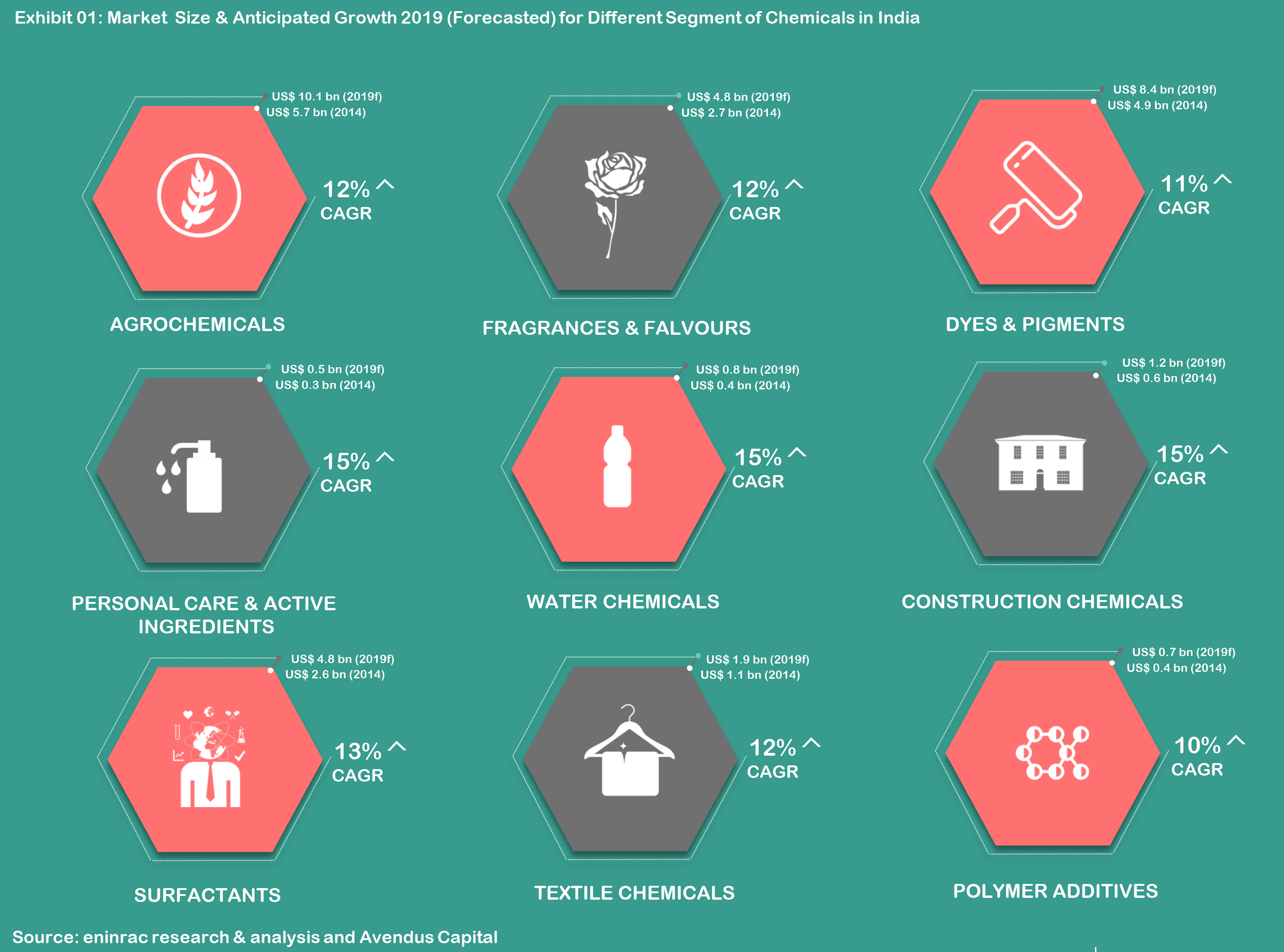 India with its economic growth projections at a similar levels to the beginning of century i.e. 2000’s the demand for chemical industry shall be good enough to attract eye balls from across the globe. With A-PAC being the region attracting maximum growth scale opportunity and the relative stability in the oil prices touted as main driver shall see the countries under the positive growth margins. Given, the mature market conditions of China, India shall be the growth market rendering opportunities to the players involved in the chemical value chain extending from agrochemicals, speciality chemicals and petrochemicals at the same time.
