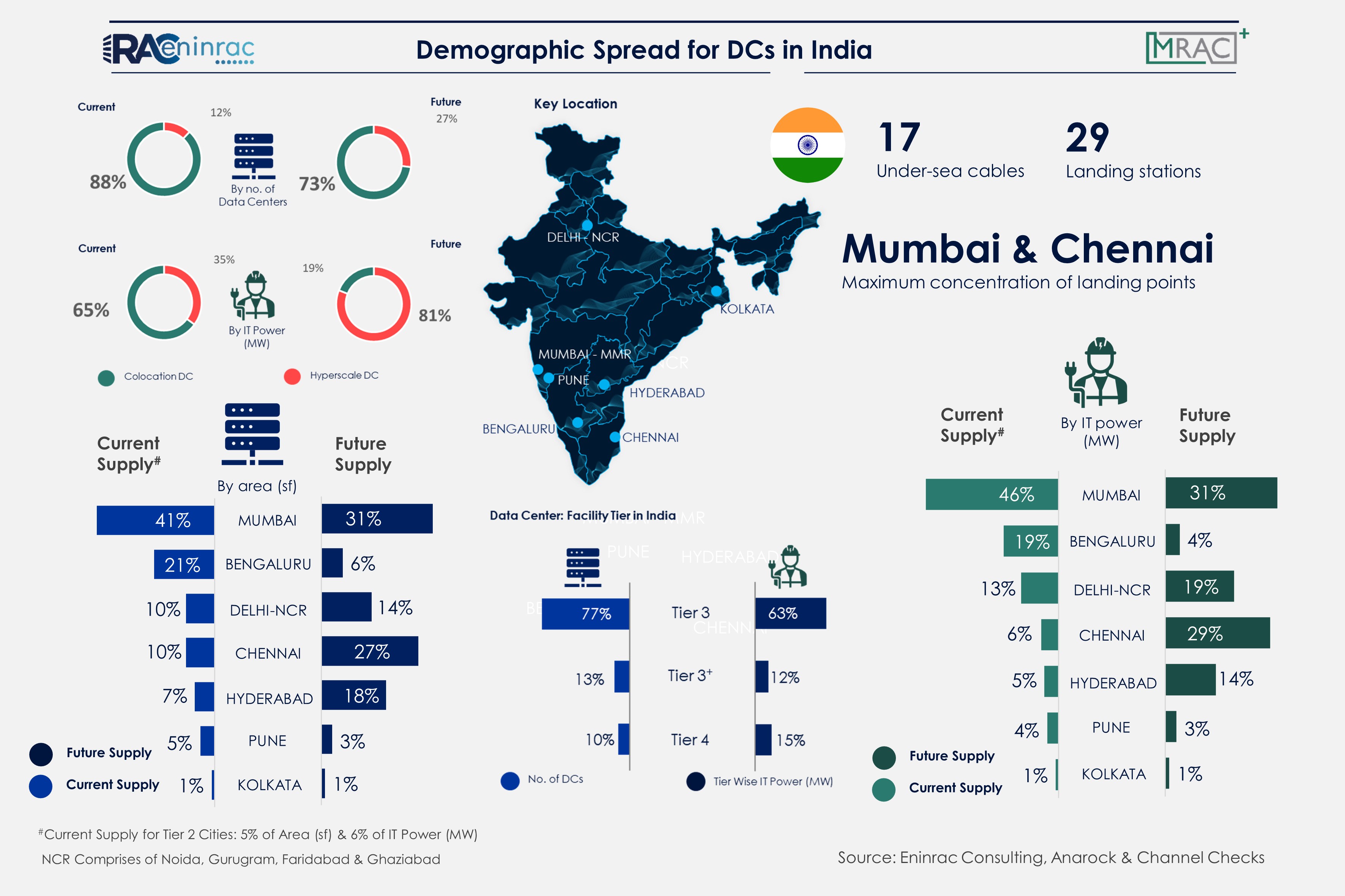 India is establishing itself as a major presence in the digital economy. From internet connections to app downloads , both the volume and growth of its digital economy now exceeds those of most other countries. Government and the private sector are moving rapidly to spread high speed connectivity across the country and provide hardware and services to put Indian consumers & businesses online. Further, rising mobile penetration is leading to significant data proliferation amongst its consumers. India offers a large base of global users for digital mediums such as social media apps, IOT devices and OTT platforms. With the expected 5G implementation and data localisation norms, need for data storage to be closer to its users gains greater importance, with a view to measure down on latencies. Further, the advent of COVID 19 led to a push for working from remote and home locations which thrusted further the usage of cloud services and video conferencing. Also, a spike in the internet use has been observed more people were using to work, play or stay informed. This led to the data center staff being categorized in the country as essential in the level of mission critical even during lockdown days. Hence, development of data centres holds a good business case in India.