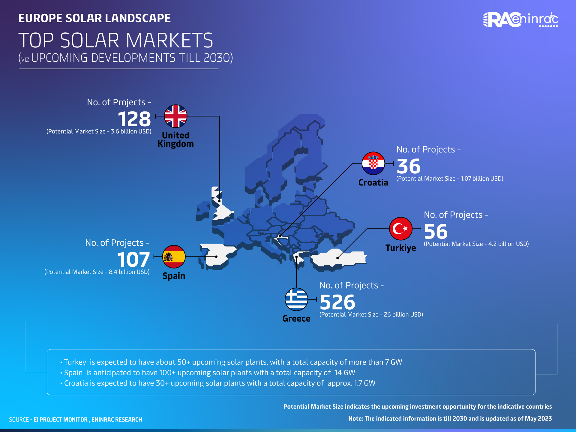 Holistic project database tracking approx. USD 53 Billion of solar projects activity of Europe till 2030