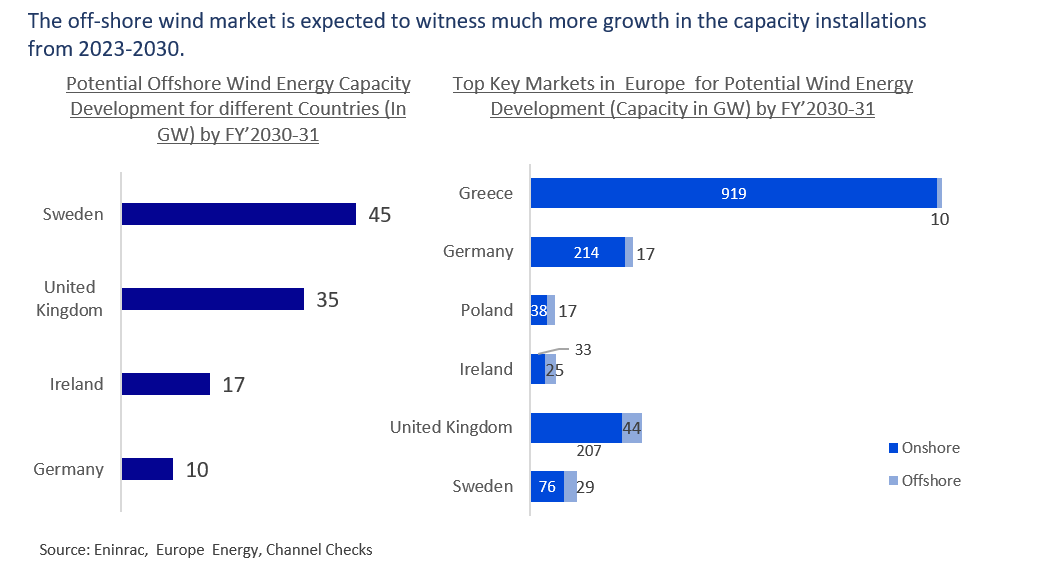 Over 300GW+ capacity of wind energy projects both (onshore & offshore) are tracked in Europe including some of key big markets like- Brazil, India, China, Vietnam, etc.