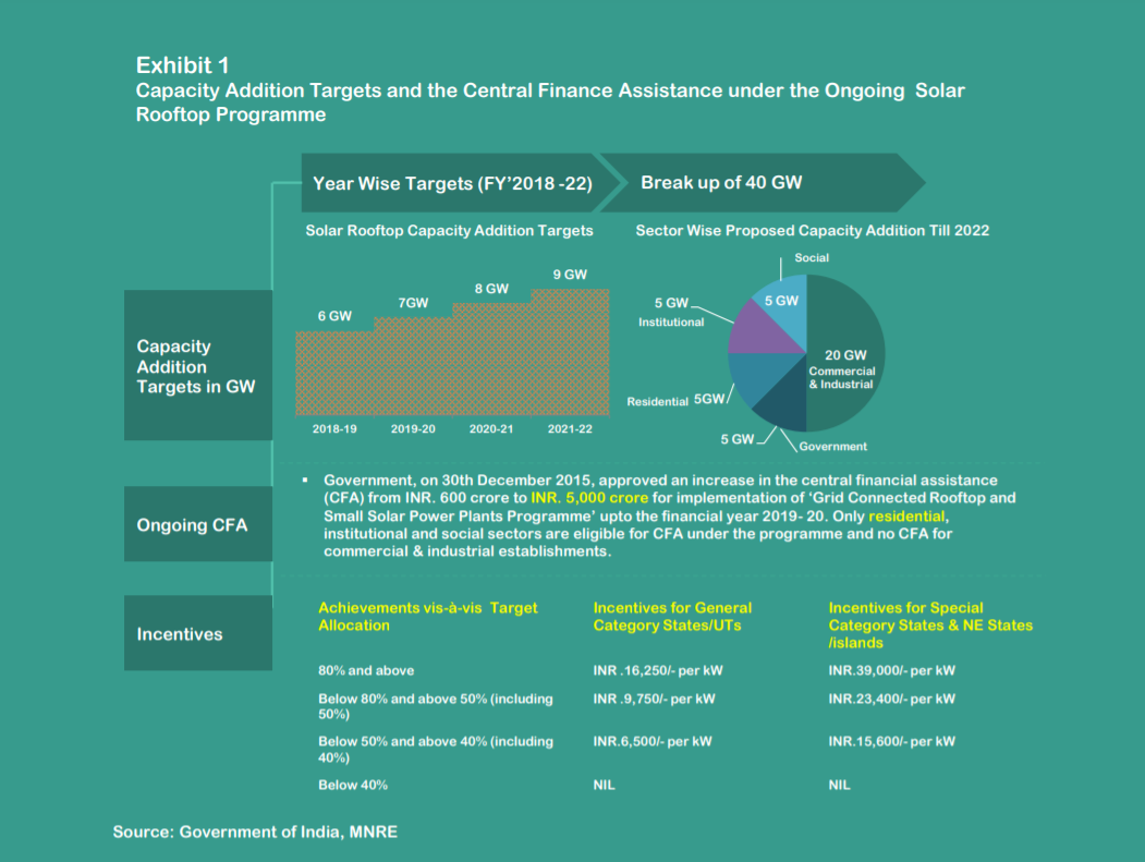 - 40 GW of grid connected solar power capacity in India is targeted to come through rooftop solar power installations by 2022